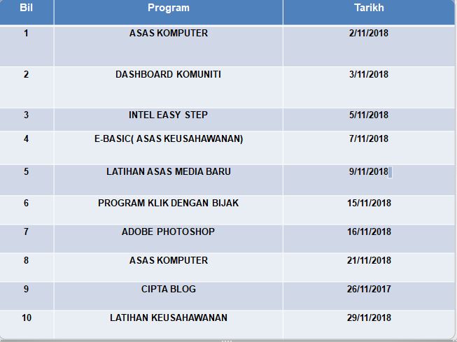 JADUAL AKTIVITI DAN KELAS LATIHAN SEPANJANG BULAN NOVEMBER 2018